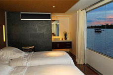 All suites are air conditioned,and four are interconnected,to cater to families. Guests can socialize in the dining room, bar, on the observation deck and in the outdoor lounge. There is also a small boutique. You'll be served by a crew of 14, plus three skilled guides. Rates