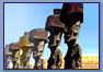 Huge Moai carved stone figures are still a mystery to archeologists who have come up with all sorts of different theories, as to how the islanders carried them from the volcanoes considering that they weigh about 50 tons and are more than 10 meters high.